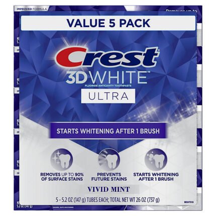 Crest 3D White Vivid Mint Ultra Whitening Toothpaste, 5.2 oz., 5 pk.