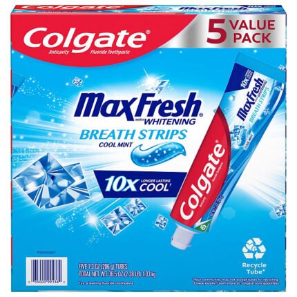 Colgate MaxFresh Toothpaste with Mini Breath Strips, Cool Mint, 7.3 oz., 5 pk