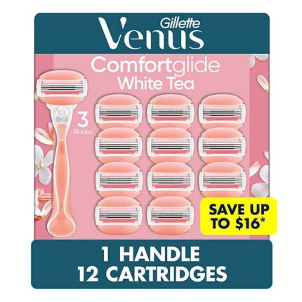 Venus Comfortglide Women’s Razor Handle + 12 Cartridges, White Tea