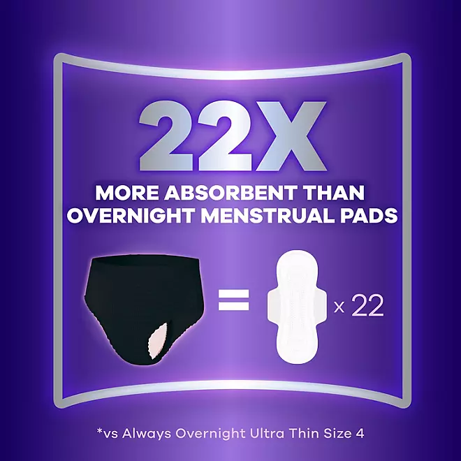 The form-fitting design of Always Discreet Incontinence and Postpartum Underwear for women hugs your curves with a soft, silk-like fabric so you can walk with poise and confidence. It’s the delicate, barely noticeable look you want in disposable panties for women, paired with the leak-proof protection you deserve. The super absorbent core turns liquid to gel to stop bladder leaks in seconds for up to 12 hours of reliable overnight leak-free protection.