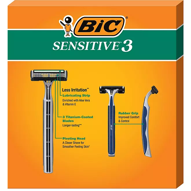 BIC Sensitive 3 disposable shavers have pivoting heads to help adjust to the contours of your face or body for a closer shave. Plus, the men’s razor handle has a non-slip rubber grip for improved comfort and control. Looking for affordable, dependable three-blade sensitive skin razors that deliver a closer shave for smoother feeling skin? Choose BIC Sensitive 3 Disposable Razors for Men.