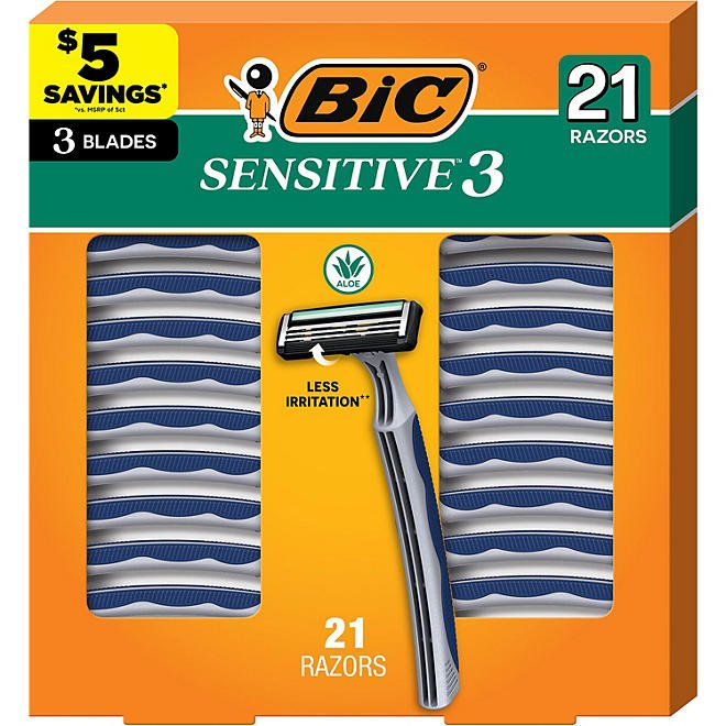 BIC Sensitive 3 Disposable Razors for Men, 3 Blade, 21 ct.