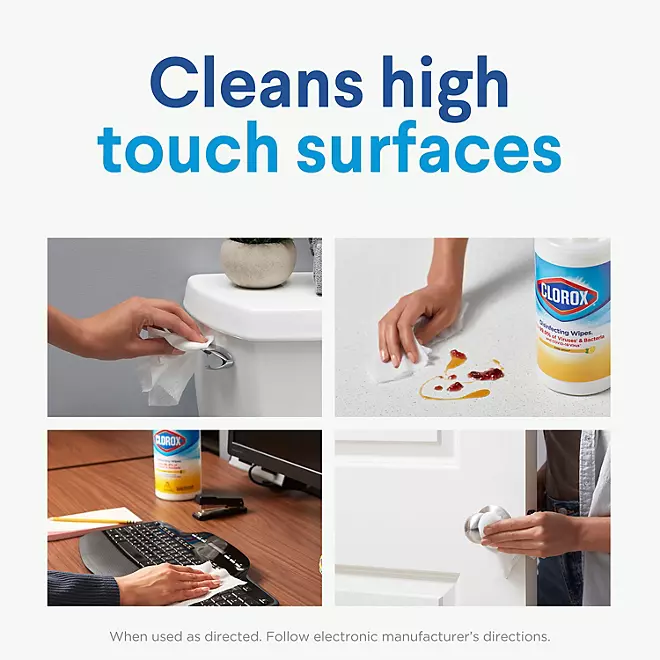 This pack contains five 85-count canisters that easily dispense disposable antibacterial wipes. They come in three fresh, clean scents, adding to the overall cleaning experience. Dispose of these wipes according to the manufacturer’s instructions for a hassle-free clean-up. Importantly, these Clorox Disinfecting Wipes are bleach-free, offering a safe, all-in-one cleaning alternative that?s safe to use on toys and more. Experience the convenience and power of Clorox Disinfecting Wipes today.