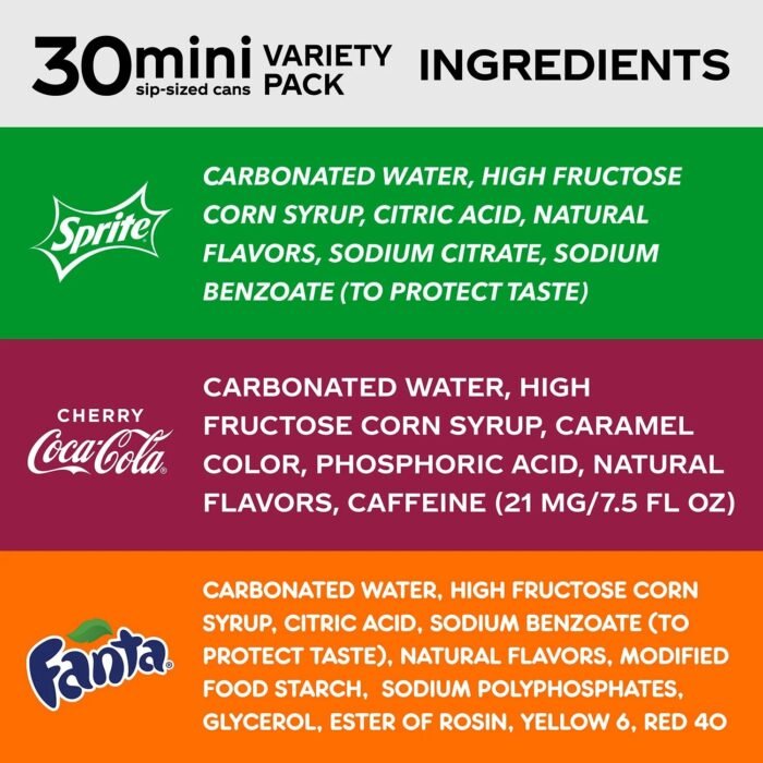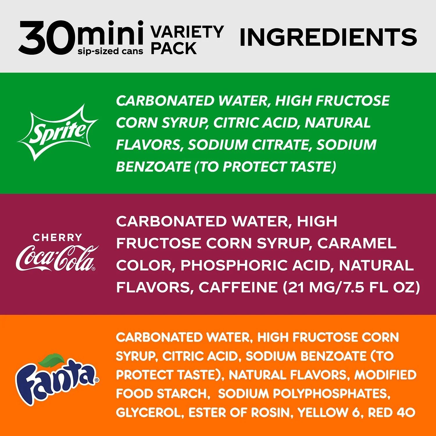 This Mini Variety Pack is the perfect addition to various occasions. Open a box and share these refreshing drinks with your friends and family for a break that everyone will enjoy. This pack features three delightful Coca-Cola brands: Sprite, Cherry Coke, and Fanta Orange.