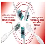 The Colgate Optic White Manual Toothbrush stands out with its advanced multi-action bristle design. This design is a step ahead of ordinary flat trim toothbrushes, ensuring a thorough cleaning of teeth, tongue, cheeks, and gums. The toothbrush is designed to remove bacteria effectively, promoting overall oral health.