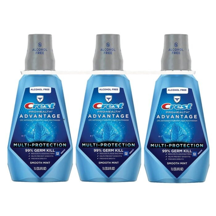 You can make a difference in your oral health starting today. Advance to a Healthier Mouth from Day 1* with Crest Pro-Health Advantage Smooth Mint Multi-Protection Mouthwash which starts fighting plaque from day 1. Crest Pro-Health Rinse is a leading brand of mouthwash, and it has a high percentage of repeat consumers. Crest Pro-Health Advantage Smooth Mint Multi-Protection Mouthwash kills 99% of germs that cause plaque, gingivitis, and bad breath without the harsh burn of alcohol. Crest Pro-Health Mouthwash contains a clinically proven germ-killing agent, known as Cetylpyridinium Chloride (CPC). CPC interacts with the germs and kills them, effectively fighting plaque, gingivitis, and bad breath. Crest Pro-Health Advantage Smooth Mint Multi-Protection provides 24-hour protection* against plaque and gingivitis when used twice per day. All Crest mouthwashes give you a healthy smile, with specialized solutions tailored to all your oral care needs for an all-around healthier mouth.