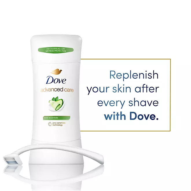 Shaving can actually reduce ceramide levels in your skin, making it important to provide your underarms with the care they need. Dove Advanced Care Cool Essentials Antiperspirant Deodorant Stick ensures that your underarms receive the best skin care and TLC, without any worries about shaving.