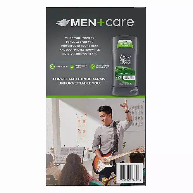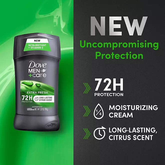 Try Dove Men+Care Extra Fresh Antiperspirant Deodorant Stick. Our Extra Fresh antiperspirant deodorant provides powerful 48-hour protection against sweat and odor for lasting freshness. This antiperspirant for men is formulated with our Triple Action Moisturizer and vitamin E to deliver active skin moisturization and helps protect against skin irritation. It’s tough on sweat, not on skin.