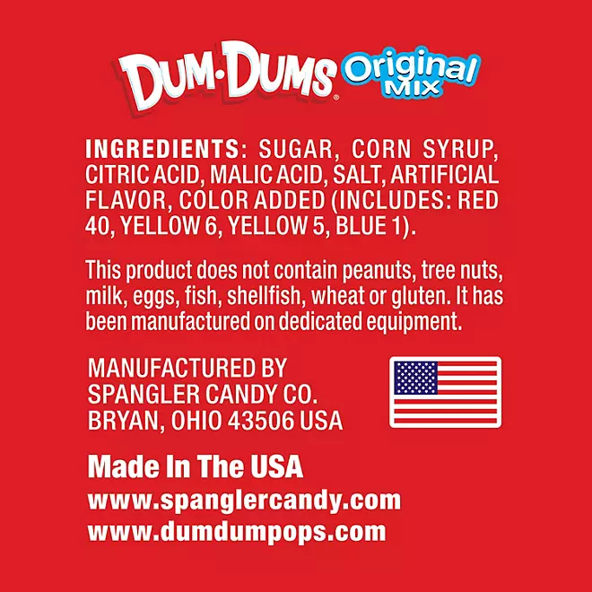 Dum Dum® Original Pops (500 ct.) have been an American favorite lollipop since their creation in 1924. With 16 fun flavors plus the signature Mystery Flavor, these dum dum lollipops are perfect for kids of all ages—and grownups too! This Dum Dum Original Pops pack is the best way to grab a large amount of candy for kids’ birthday parties, as Halloween goodies, school events or just to stock your home with sweet treats.