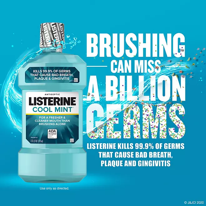 Protect your mouth from germs and get fresh breath with the Listerine Cool Mint Antiseptic Mouthwash. Accepted by the American Dental Association (ADA), this germ-killing mouthwash for bad breath is clinically shown to reduce plaque and reduce gingivitis. Plaque removal is vital for dental health and cavity prevention.
