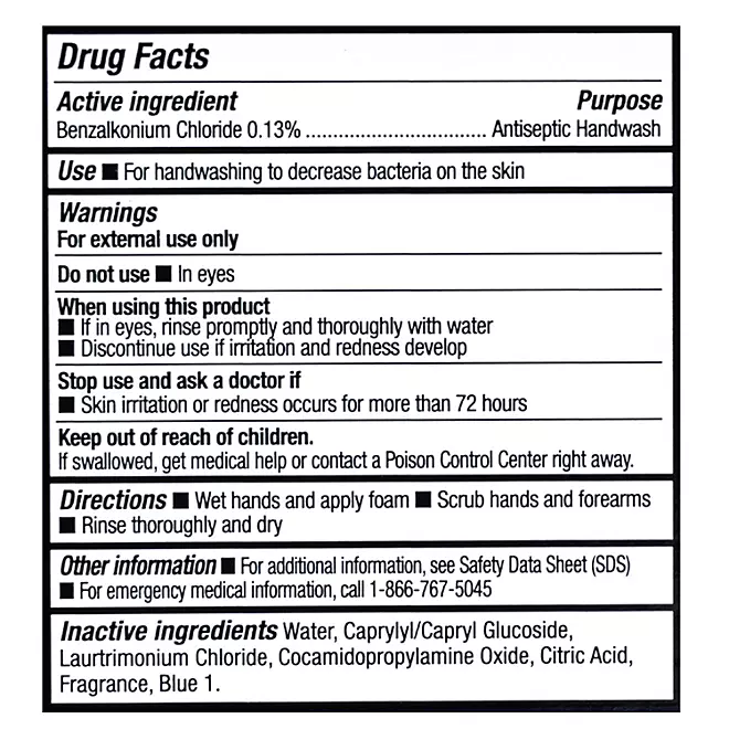 • Member’s Mark anibacterial foaming hand soap contains a clean and fresh fragrance