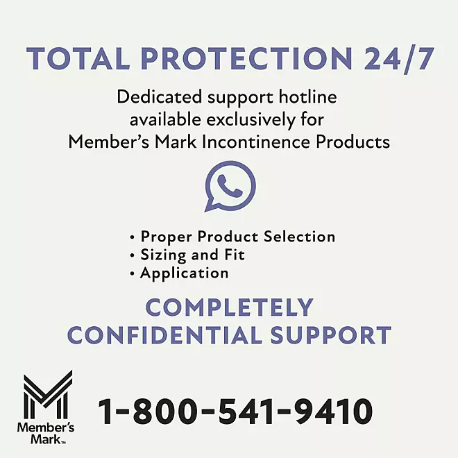 Now you can experience the same maximum protection against leaks and odors with our less bulky, super-absorbent core. Member’s Mark® Total Protectionâ„¢ also features tailored leg elastics to fit closer to your body for a snug feel. Sleek and discreet, our new design feels more like real underwear, not bulky adult diapers. Member’s Mark is ideal for everyday bladder control, as well as postpartum bladder leaks.
