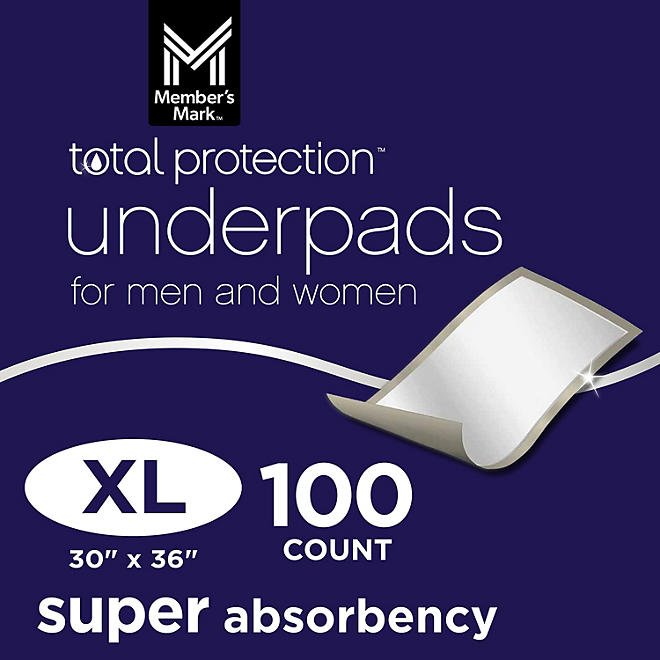 Home Personal Care Incontinence Aids Member’s Mark Total Protection Underpads Extra-Large, 30″ x 36″ 100 ct.