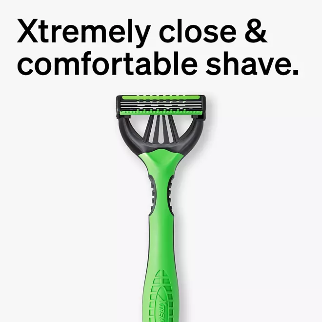 Get a smooth, close shave with this Schick Xtreme3 sensitive disposable razor. Featuring an ergonomic design, this razor offers a firm-grip handle that does not slip from your hands in the shower or at the sink. The patented blade system includes a pivot and flex function that adapts to your facial contours for an extremely close shave, while the triple-blade feature ensures ultra-smooth results. The triple-blade design flexes and pivots to adapt to the contours of your face and head so you’ll get a close shave. Its three flexible razor blades make the Schick Xtreme3 a great razor for head shaving. These long-lasting blades get up to 11 shaves with each Schick Xtreme3 Sensitive Razor for a total of up to 220 shaves per pack.
