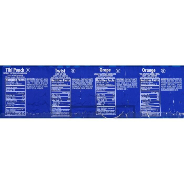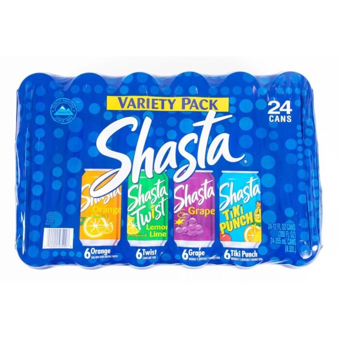 The Shasta Variety pack features some of the most classic flavors, including their very first flavor, Shasta ginger ale. The 24-piece case also includes their classic grape soda, orange and lemon/lime flavors. Each can contains 12 fluid ounces and yields one single