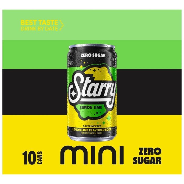 Experience the invigorating taste of the NEW Starry Zero Sugar Lemon Lime soda. This beverage delivers a crisp, clear burst of lemon lime flavor that is sure to delight your taste buds. Starry is proud to introduce a Lemon Lime soda that offers a bright hit of refreshment, illuminating a path for a generation navigating a complex world.