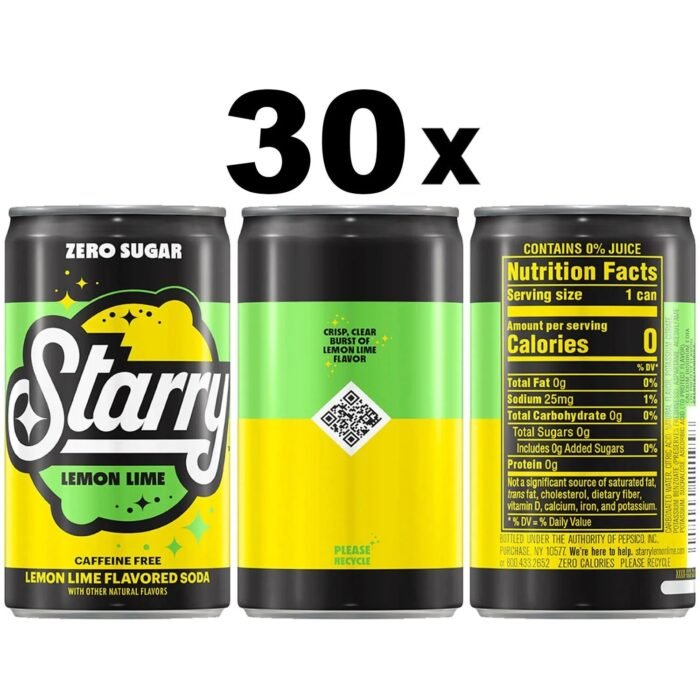 This product is sold in 3 ten-count packs, making it perfect for parties, gatherings, or just to keep on hand for a refreshing drink anytime. Enjoy the tangy, refreshing taste of lemon lime without the guilt of added sugars. Starry Zero Sugar Lemon Lime Soda is the perfect choice for those seeking a healthier, yet still delicious, beverage option.